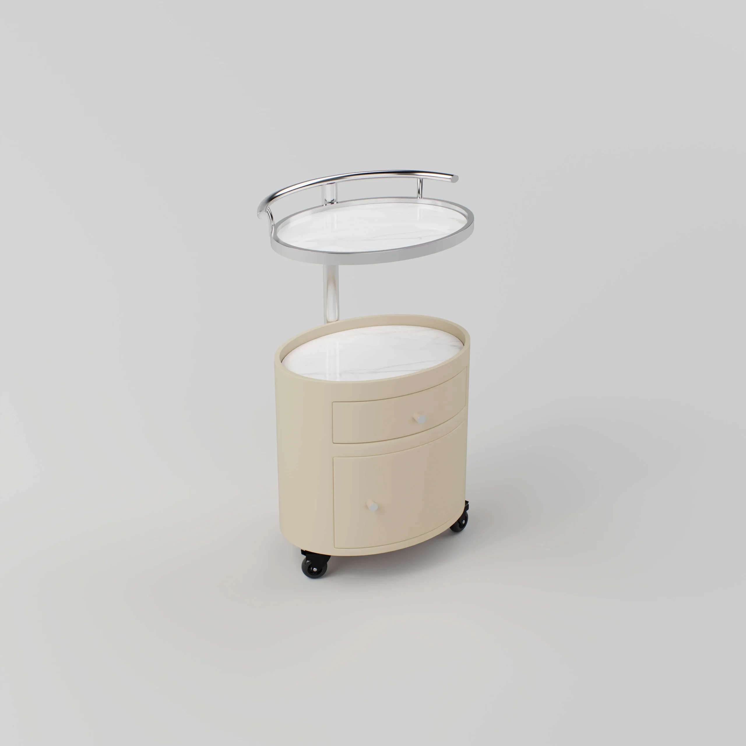 The BeNoravo NK112871 Trolley blends strength, elegance, and functionality. Its combination of stainless steel and sintered stone creates a premium look, while the customizable top configuration and smooth mobility ensure practicality for professional salons.