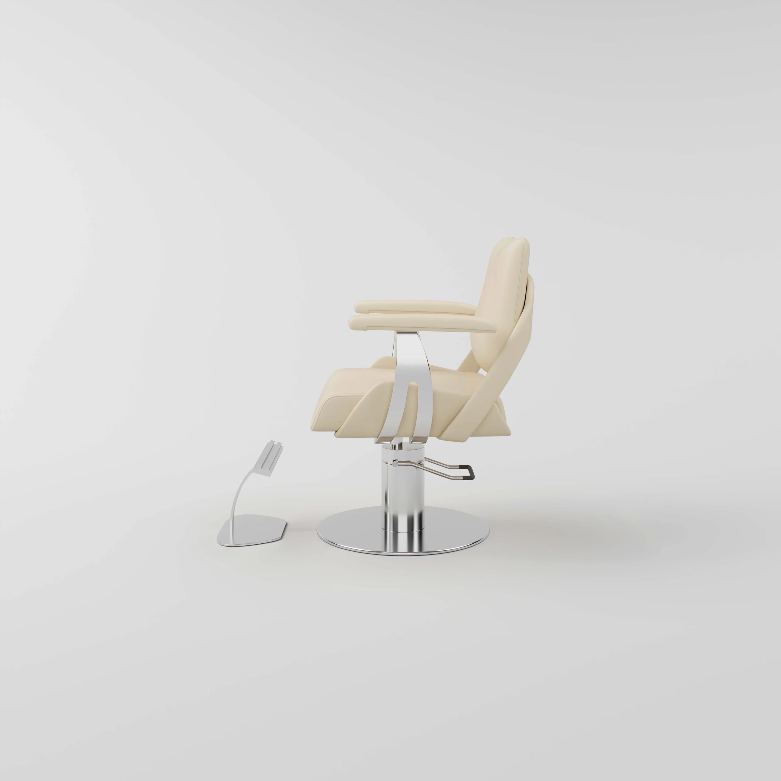 Featuring a Round Stainless Steel Base, Middle Hydraulic Pump, and stain-resistant leather upholstery, this chair offers professional stability and effortless adjustability. The soft, removable pillow and movable footrest ensure total comfort for both clients and stylists during every session.